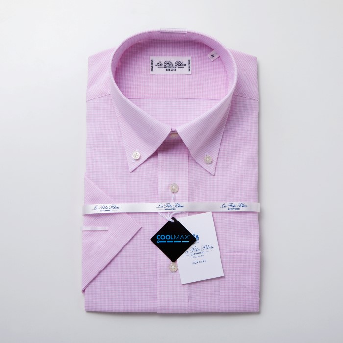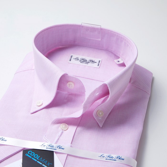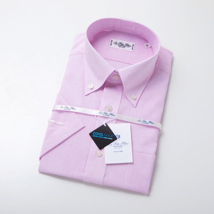 【最終販売】麻・COOLMAXポリ混紡ピンク千鳥の半そでBD