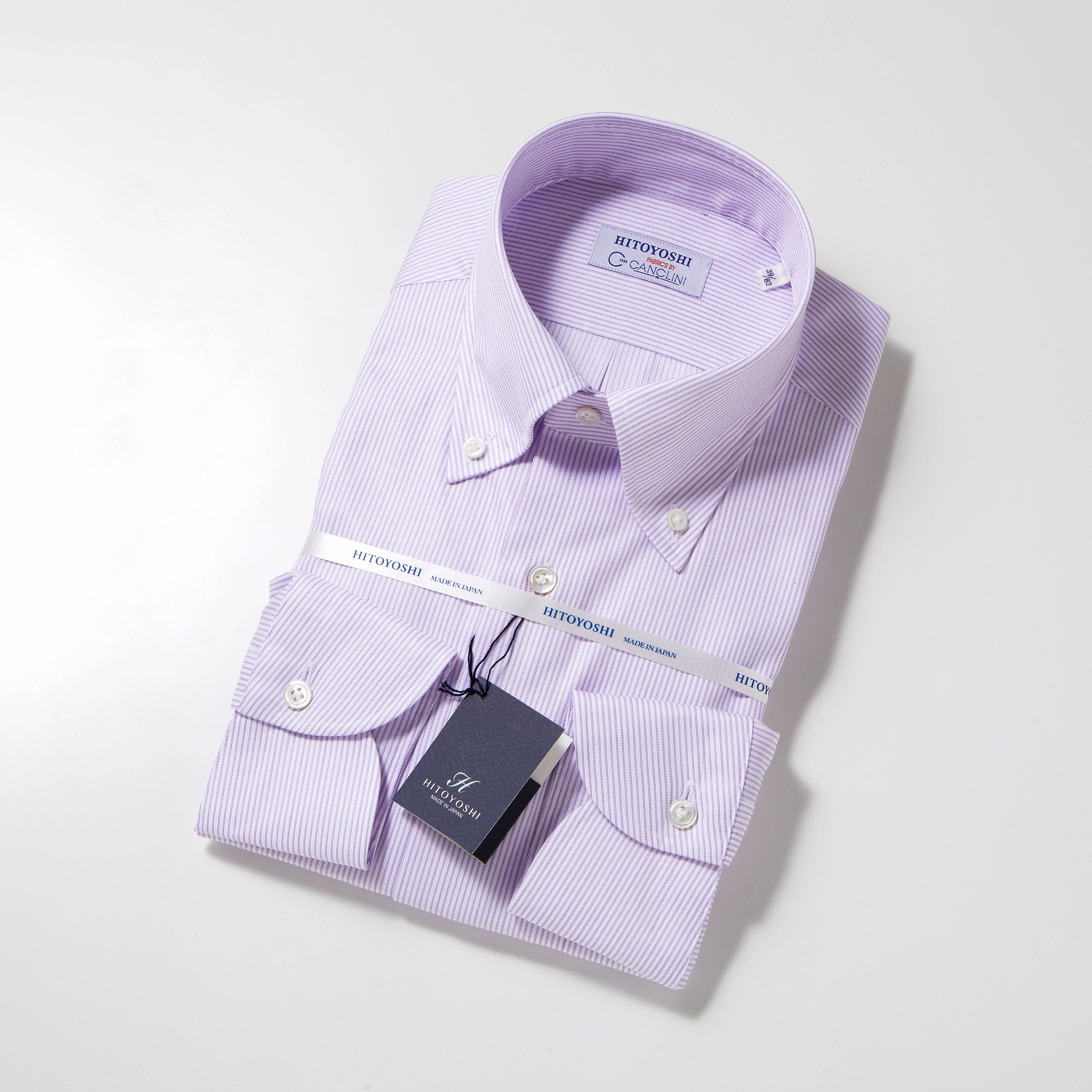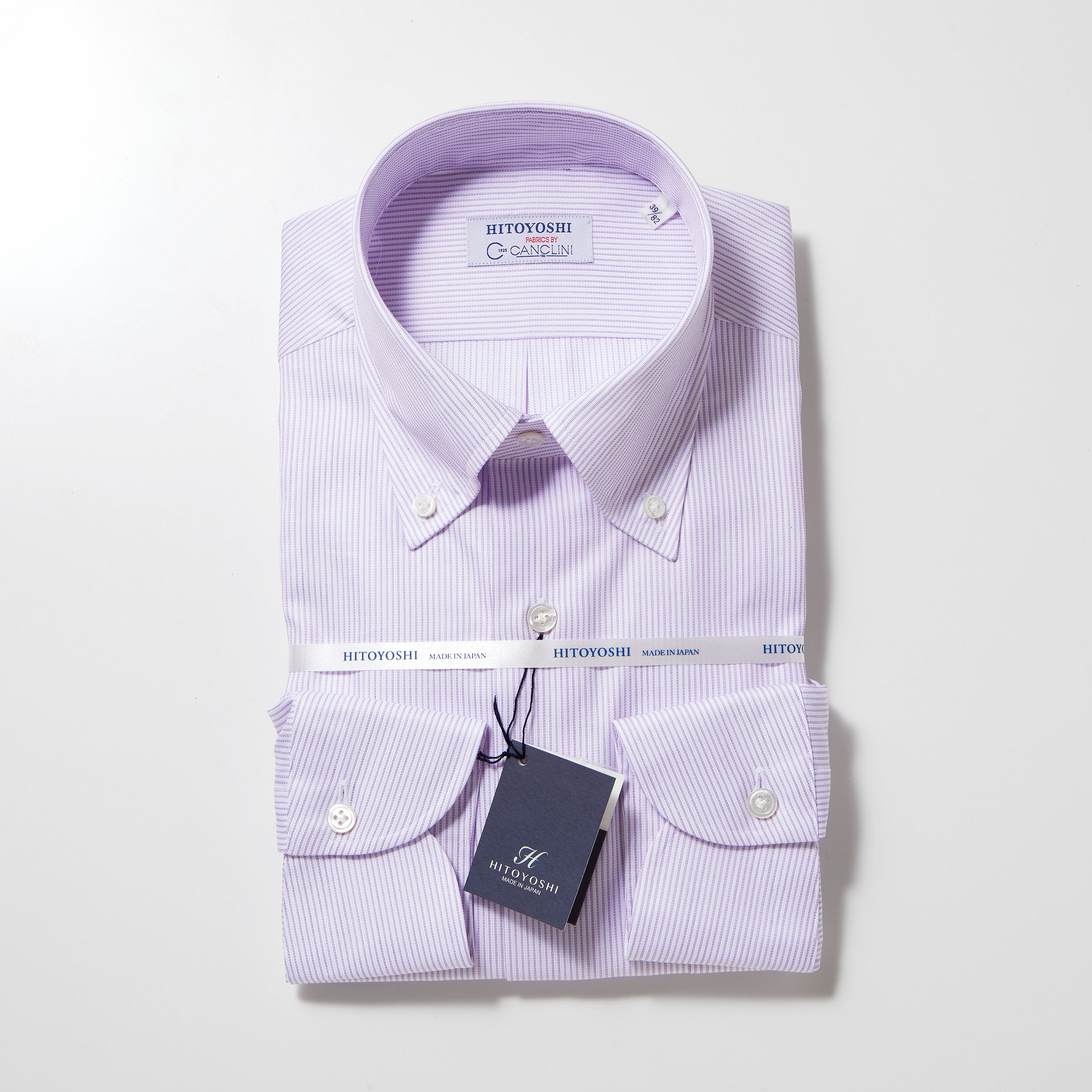 CANCLINI社がわざわざ創ってくれたHITOYOSHI CANCLINIのオリジナルネームを使用したこのお得感満載のシャツはボタンダウン・ワイドスプレッドの2型