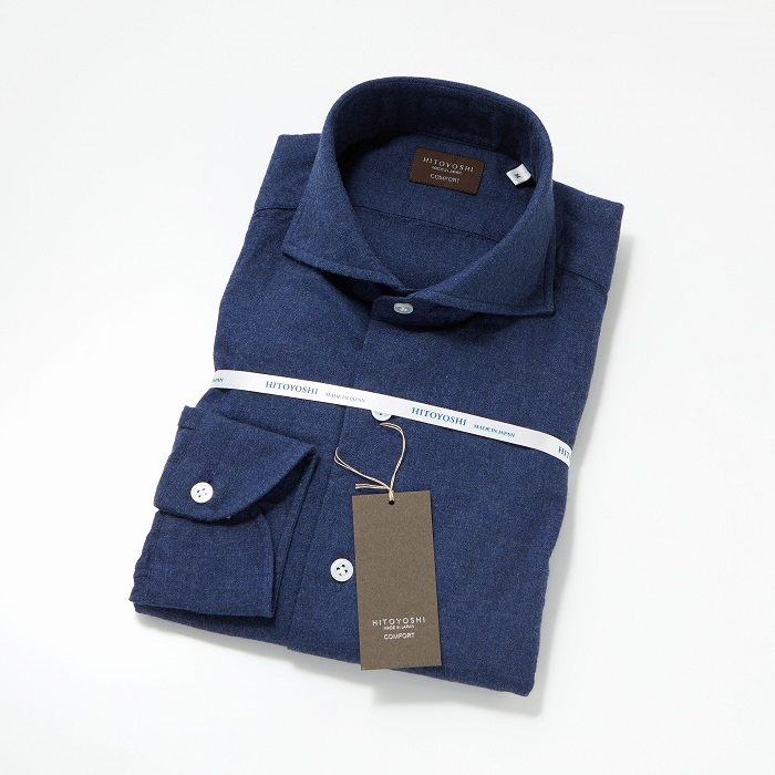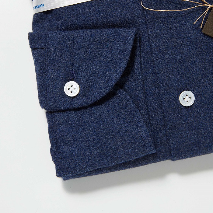 【OUTLET】暖かみのあるコットンフランネル・ネイビーメランジシャツ