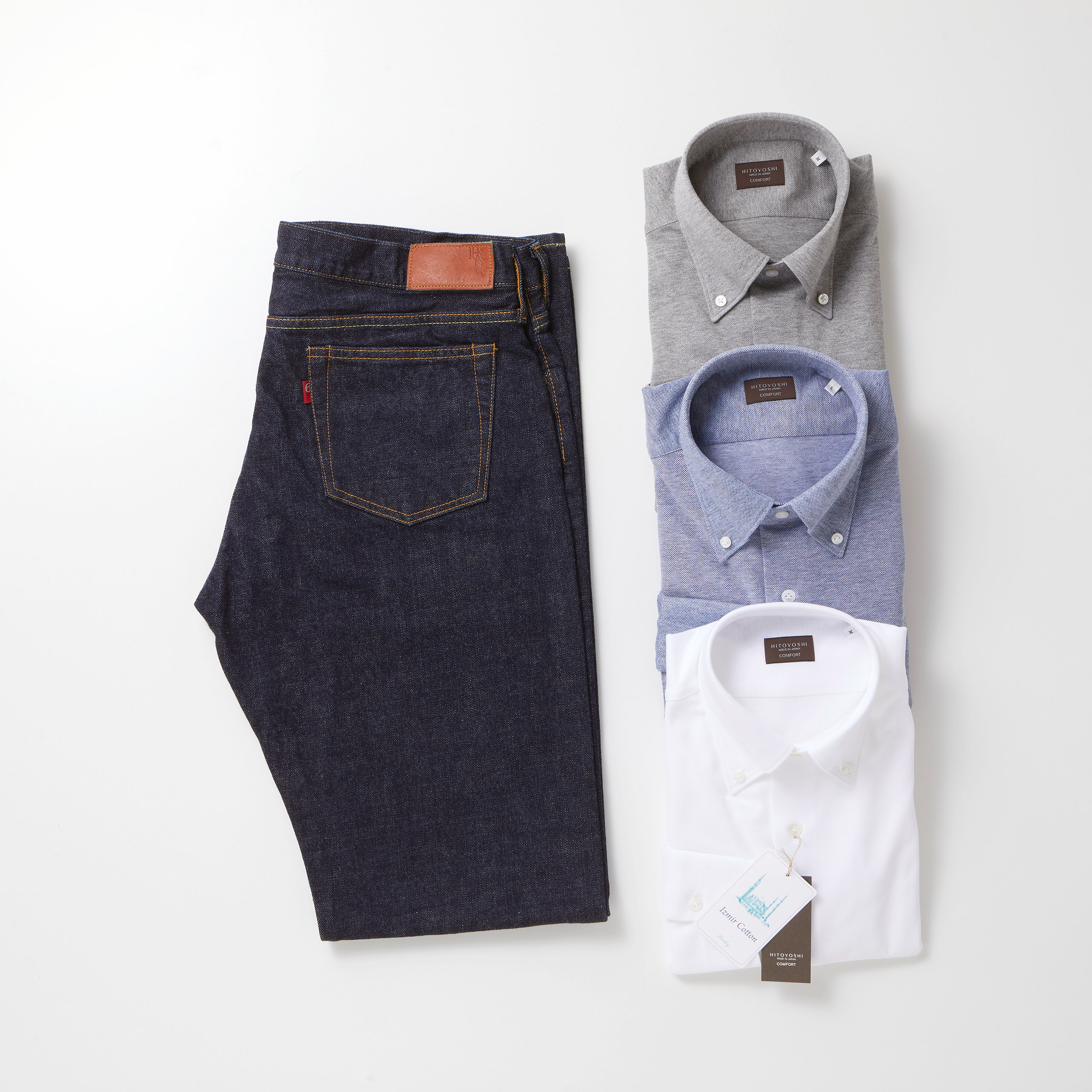 イズミル産の棉花は原棉自体が白く発色性に優れていると言われており、近しい色合いに染め分けられた綿を混ぜ精紡交撚された杢糸で編み込まれた鹿の子ジャージー生地は独特の色合いと鹿の子特有のドライな風合いで着るほどに心地よさが増しカラダに馴染んでいきます。DENIMと相性の良いホワイトメランジ・グレーメランジ・ブルーメランジの3色をご用意しました。