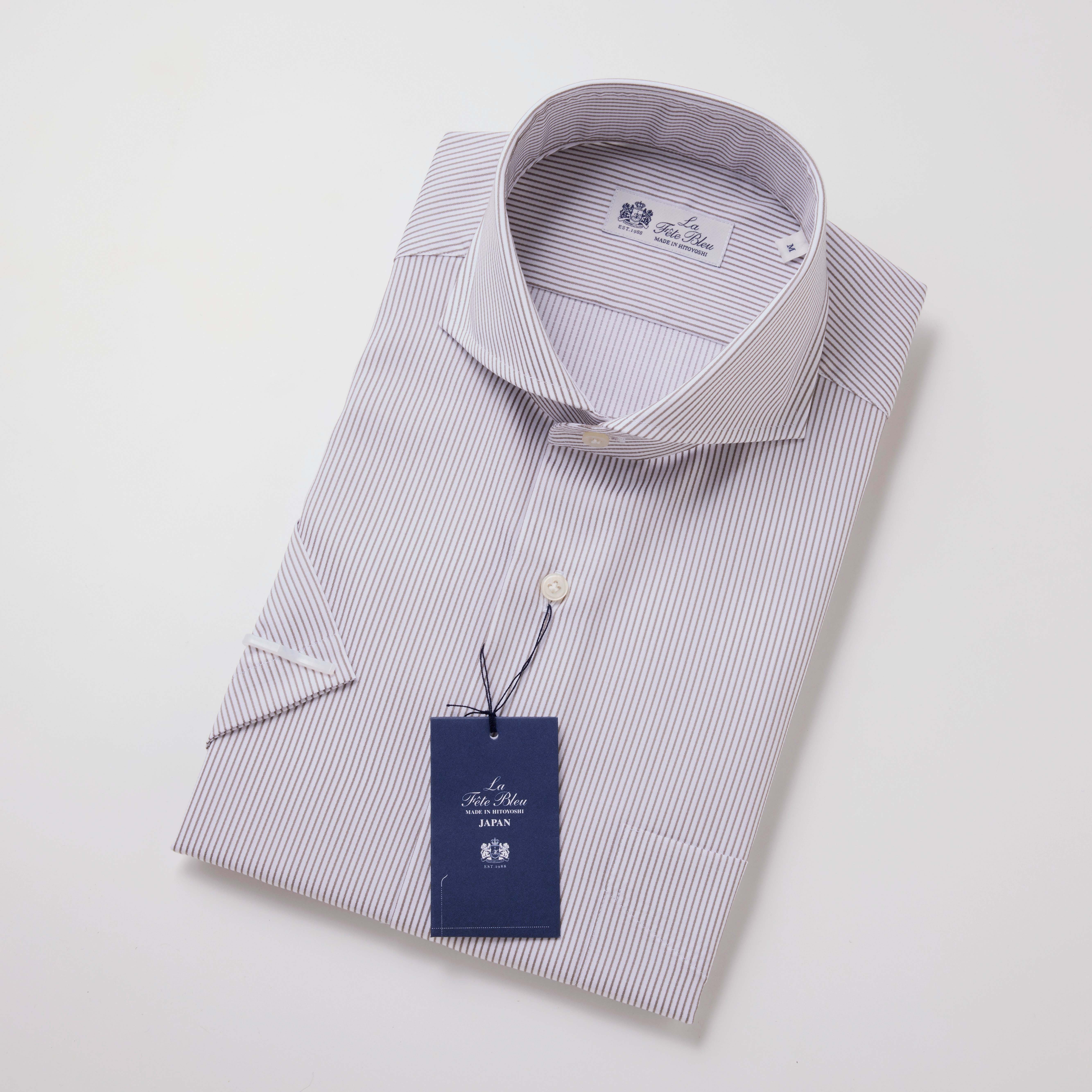 【OUTLET】薄茶ストライプの半そでカッタウェイ