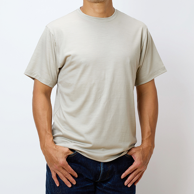 - メリノウールで仕立てた、大人のための上質Tシャツ (ベージュ)