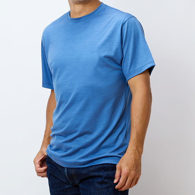 - メリノウールで仕立てた、大人のための上質Tシャツ (ブルー)