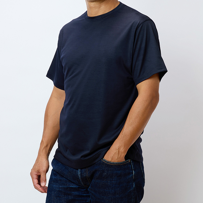 - メリノウールで仕立てた、大人のための上質Tシャツ (ネイビー)