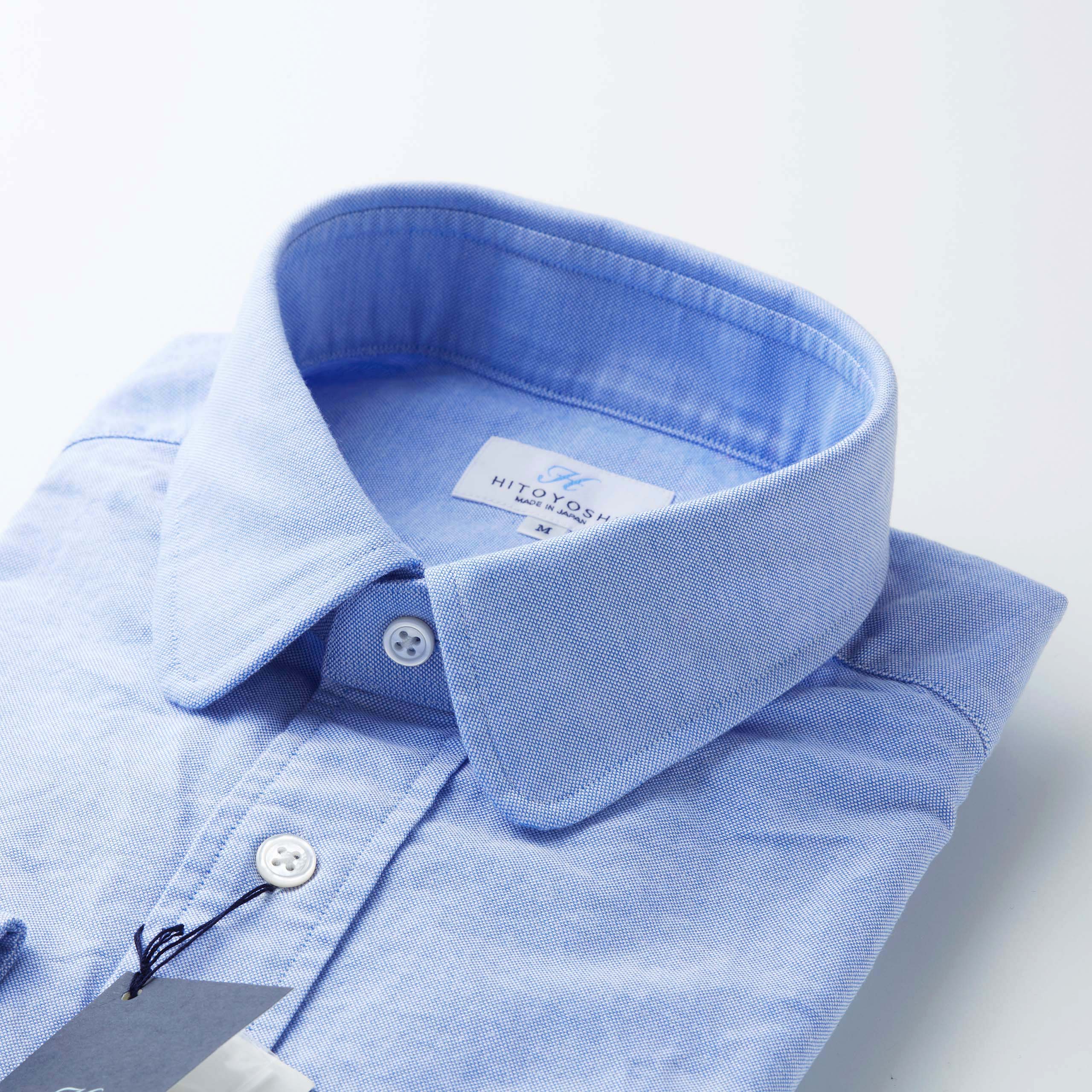 - 【最終販売】ワンウォッシュした青いオックスのラウンドカラー