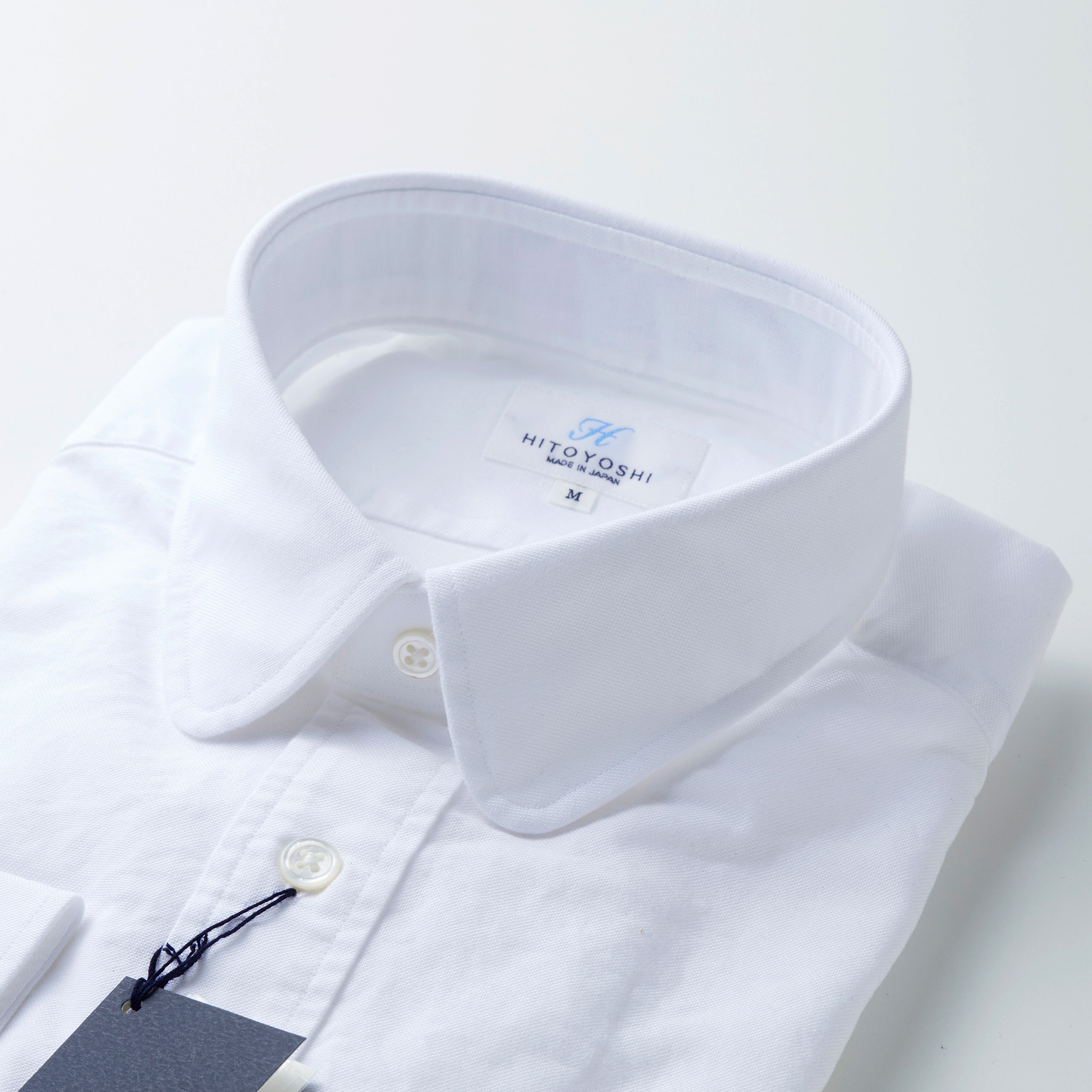 - 【最終販売】ワンウォッシュした白いオックスのラウンドカラー