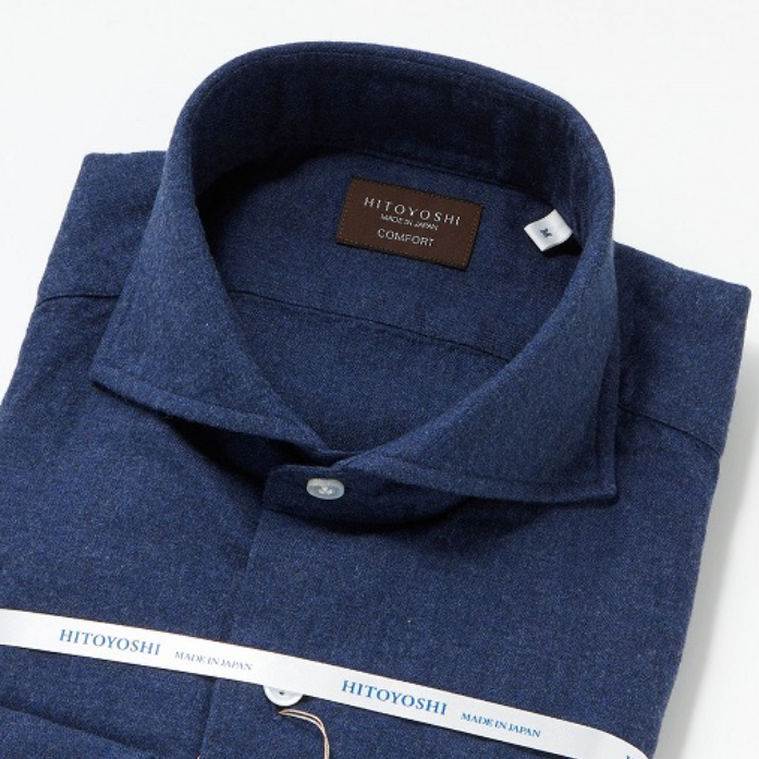 - 【最終販売】暖かみのあるコットンフランネル・ネイビーメランジシャツ