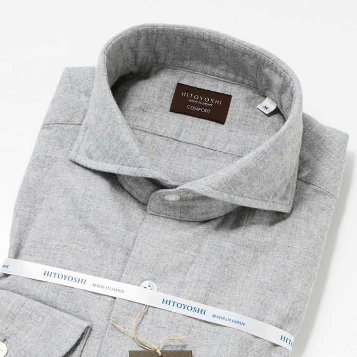 - 【OUTLET】暖かみのあるコットンフランネル・グレーメランジシャツ