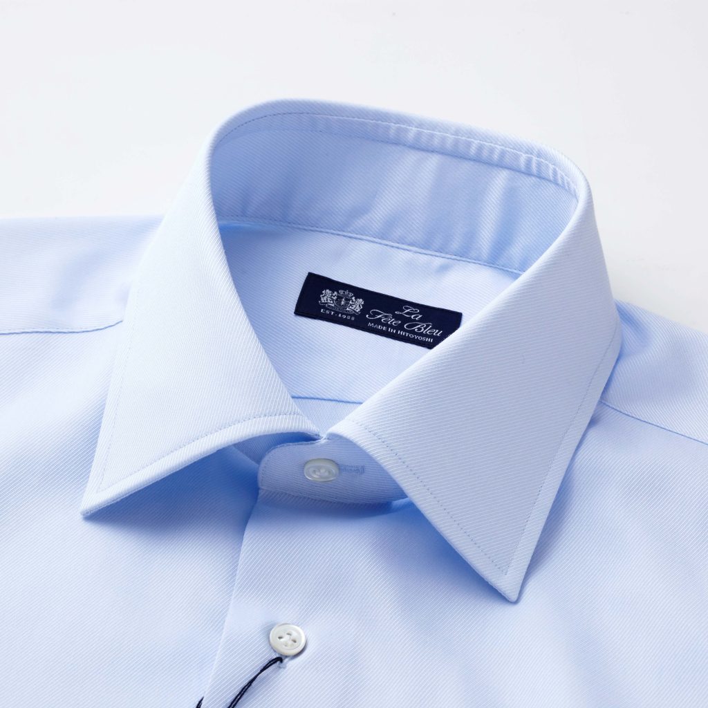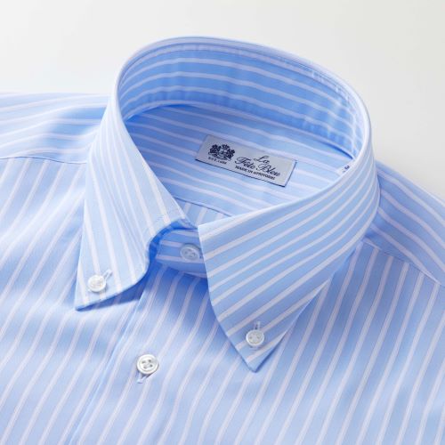 青いボタンダウンシャツ のぞきくまモン 長袖